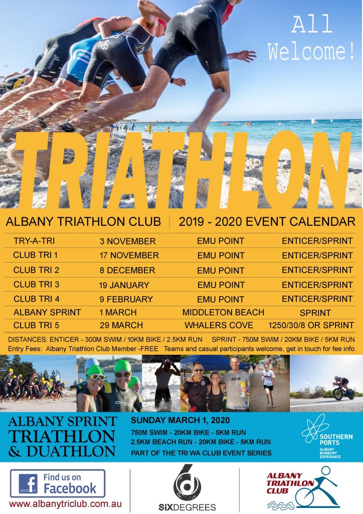 It has been confirmed that the Final Club Tri event of the season held on the 29th of March will be at Whalers cove and not the usual Emu Point course.