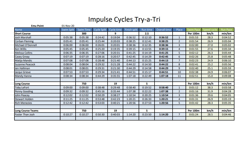 Thansk to all who we’re involved competitors and volunteers alike and we look forward to seeing you all at the next event, the 6 Degrees Club Tri #1 at Emu point on 15th November.