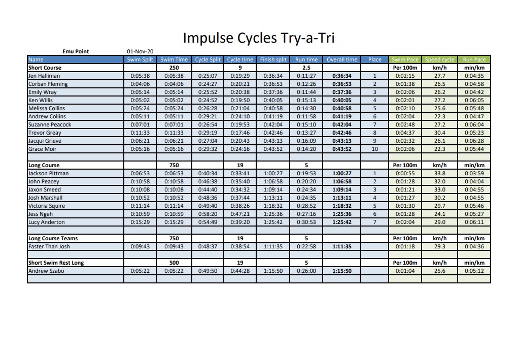 Results from the 6 Degrees Club Tri #1. A great turnout particularly in the short course with a number of brave new faces dipping their toes into the world of triathlon.